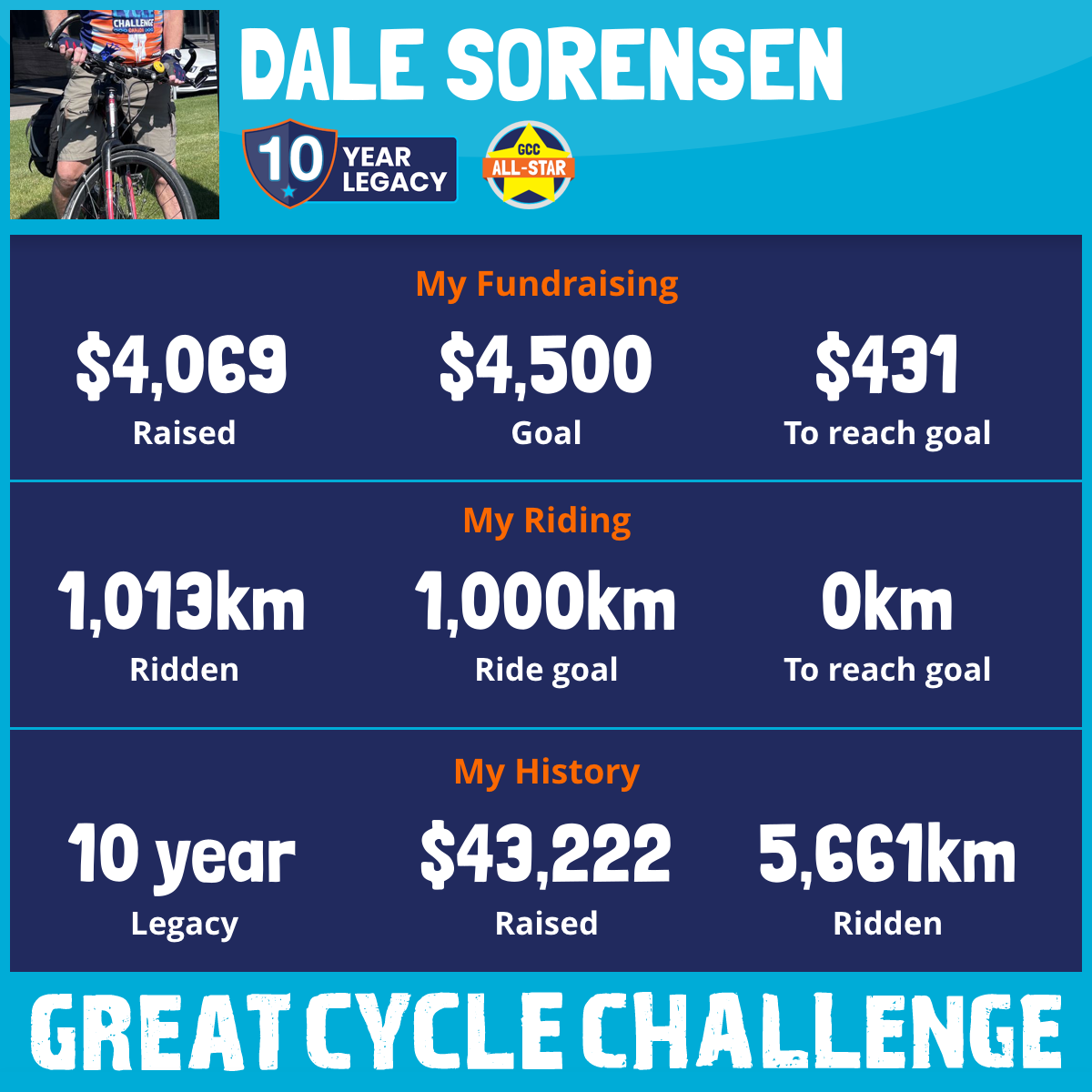 1,013 km Ridden$4,069 Raised2025