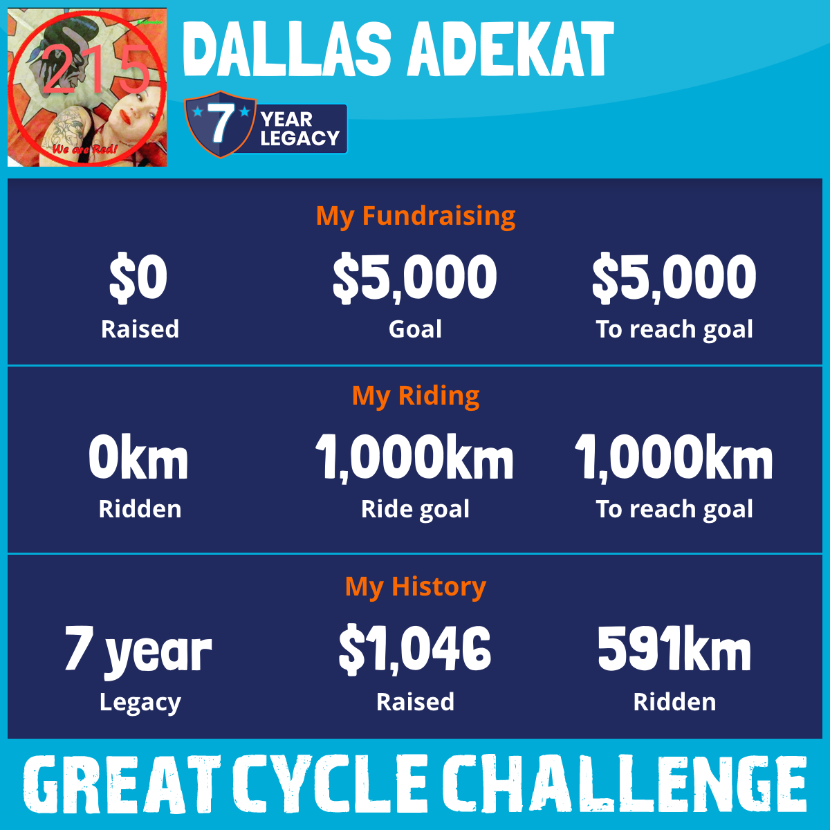 39 km Ridden$1,016 Raised2023