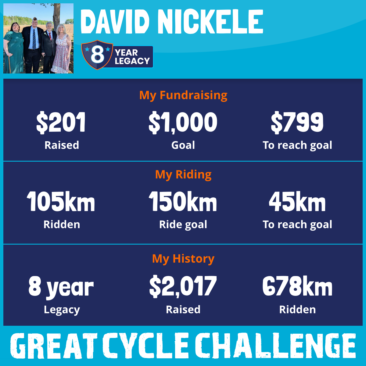 Year 7 with Great Cycle to raise funds to help kids with cancer and show my respect to my father Mike who had been diagnosed with cancer himself, he has fought with radiation to become free from cancer. Cancer has been taking my family members for years - about time it ended.