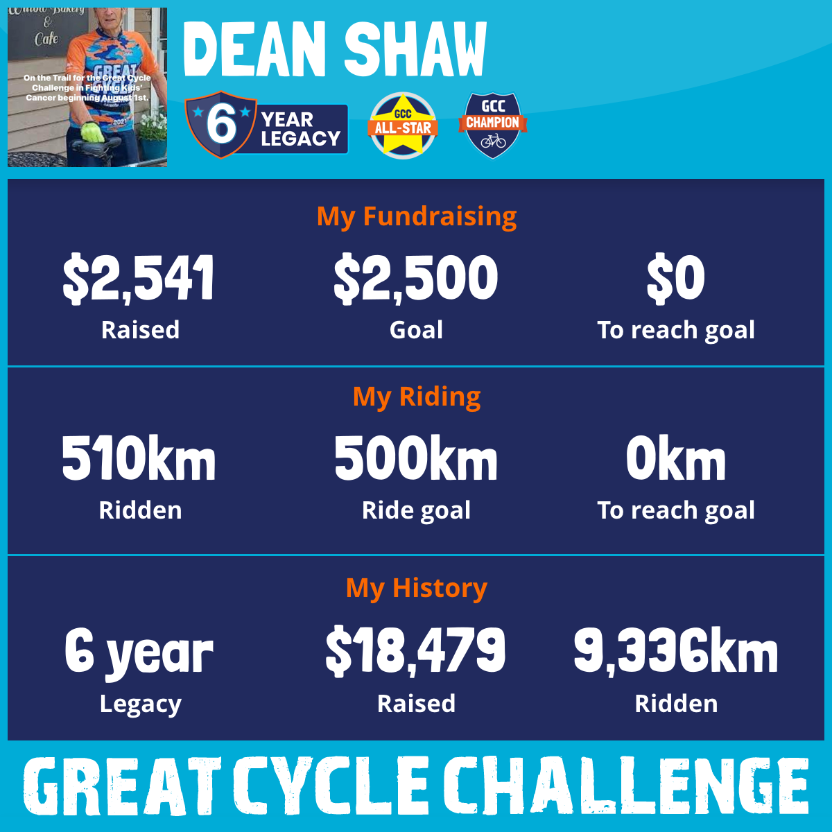 I am riding 500 km for Alfred Groom. Please sponsor me and support my challenge to fight kids' cancer and save little lives.