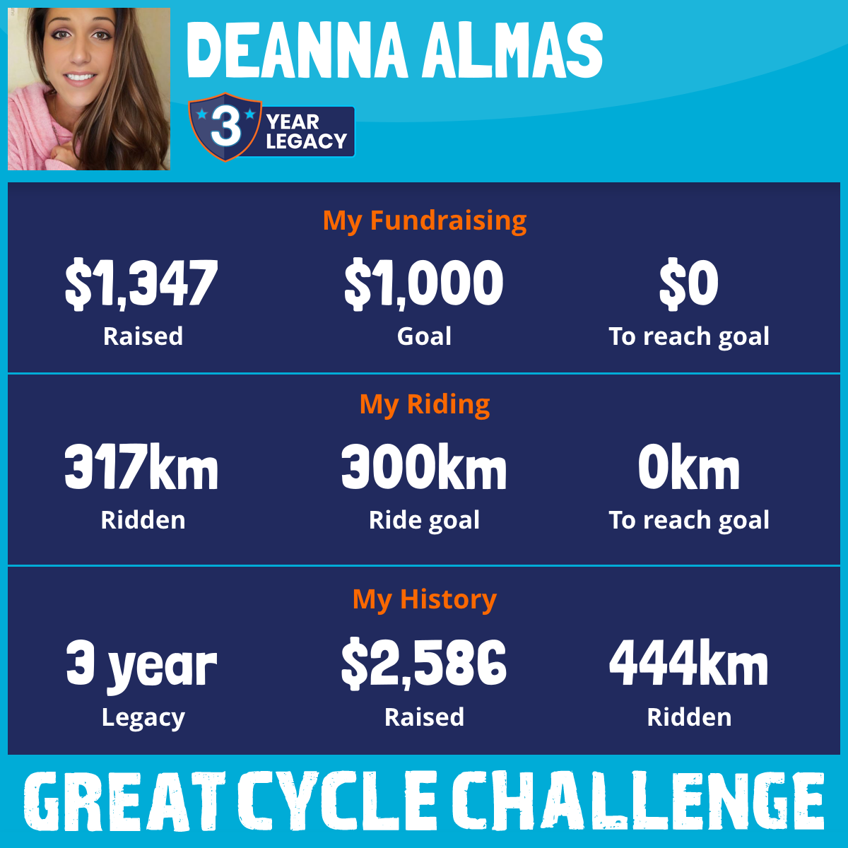 317 km Ridden$1,347 Raised2025