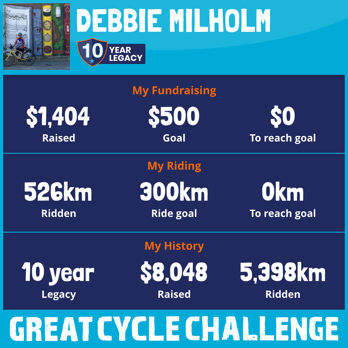 I am a little late to the party - have been feeling tired and unmotivated. However I gave my head a shake - I am fortunate in this life that I have not had to deal with cancer nor have any of my children or grandchildren. I read about all the children going through this journey and If I can contribute in a small way to find a cure for this disease, I should have not excuses. So here I am….all signed up. So for the 7th year, this August, I am taking part in the Great Cycle Challenge to fight kids' cancer!