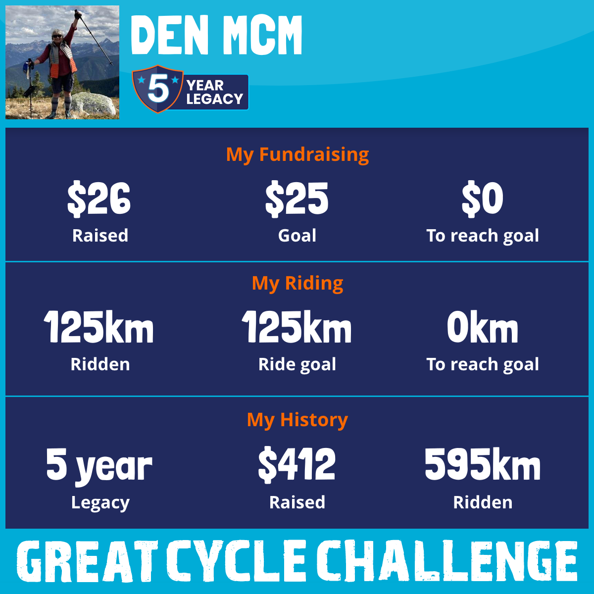 I am riding 125 km in memory of Chuck Cole and Sydney Peet. Please sponsor me and support my challenge to fight kids' cancer and save little lives.