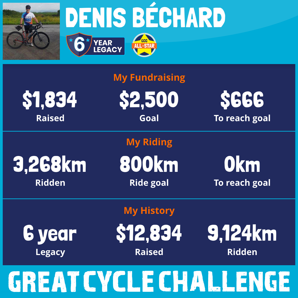 1,060 km Ridden$1,804 Raised2023