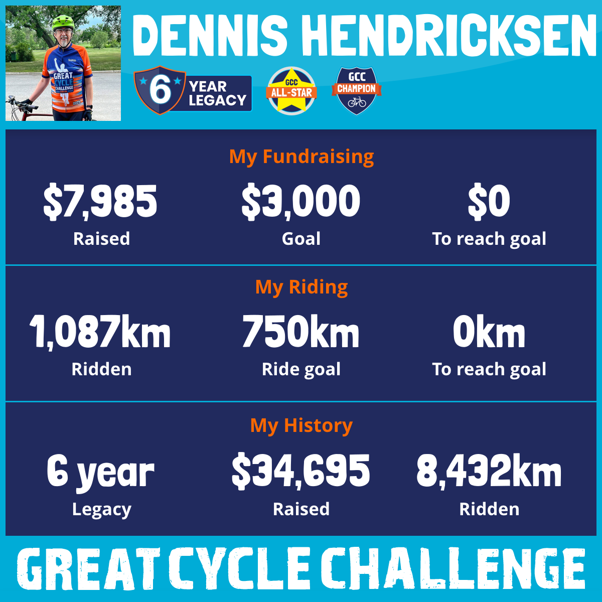 1,087 km Ridden$7,985 Raised2026