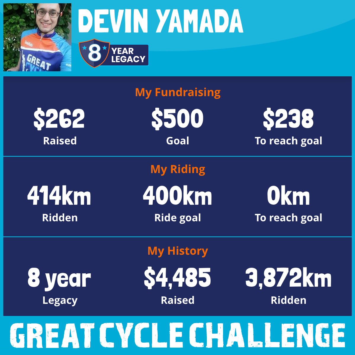 414 km Ridden$262 Raised2026