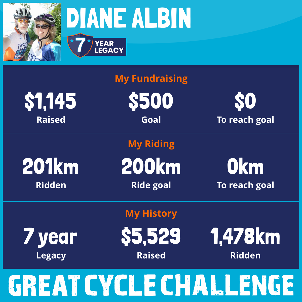 201 km Ridden$1,145 Raised2025