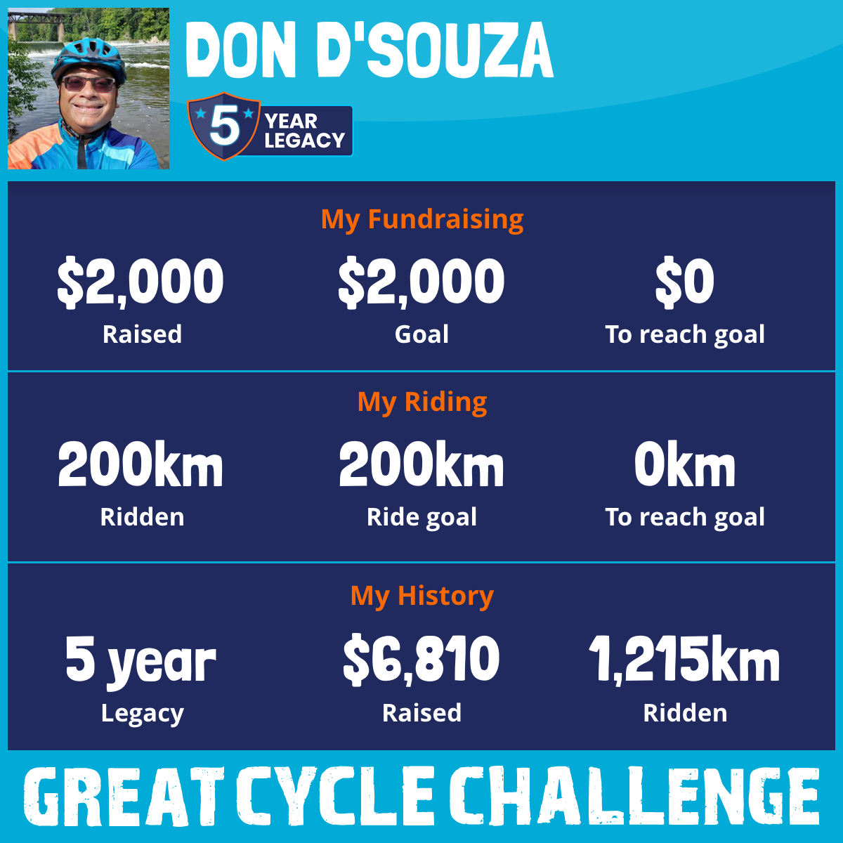 200 km Ridden$2,000 Raised2025