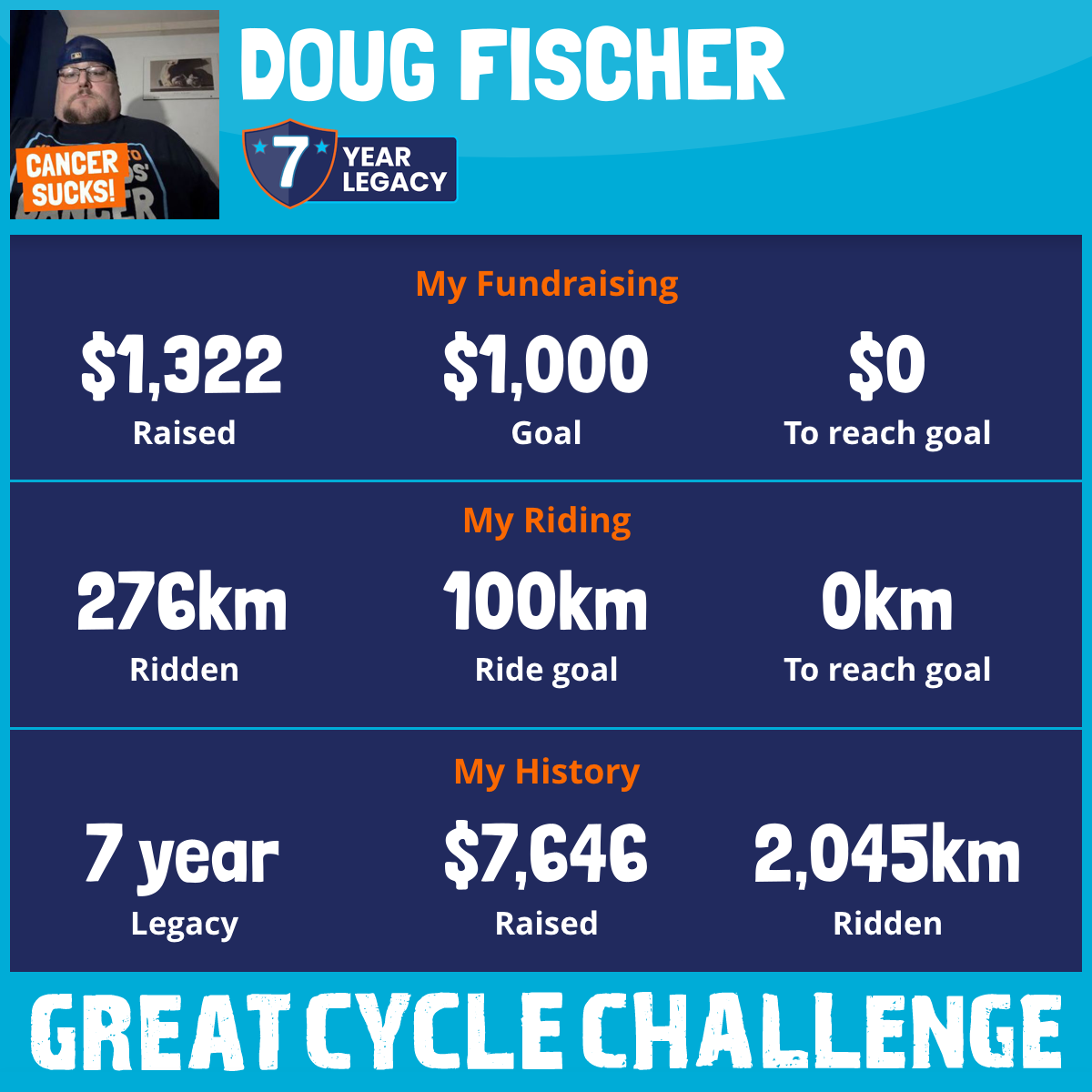 I take part in this Ride yearly challenge( my Fifth time) which I believe is a fantastic Cause to help people who are fighting cancer , I like most people, have felt the Pain of losing family Members to Cancer And hope that the money I help Fundraise will make a difference