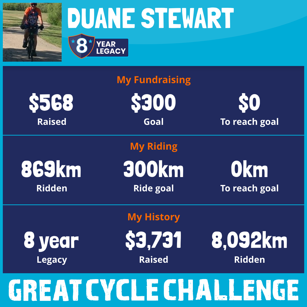 869 km Ridden$568 Raised2026