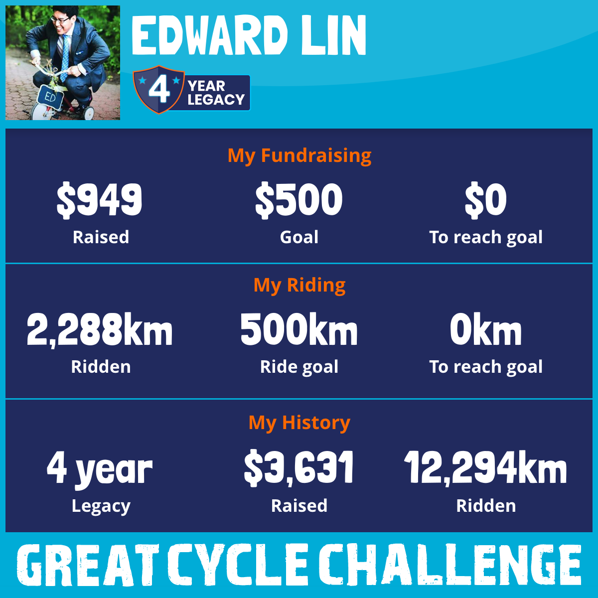 2,628 km Ridden$949 Raised2026