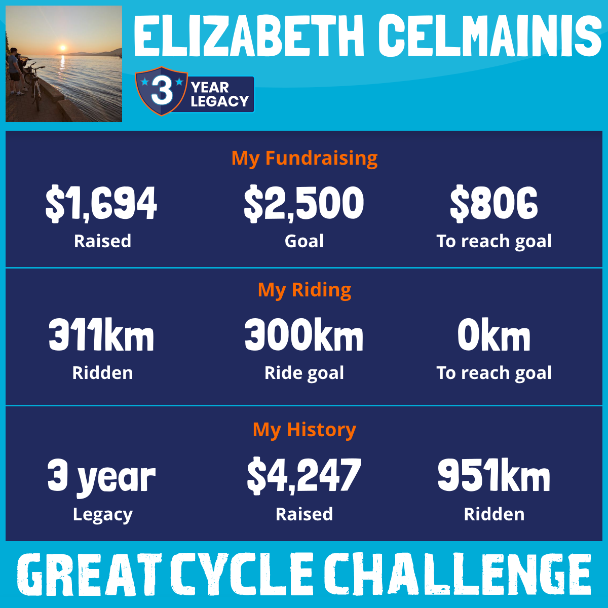 311 km Ridden$1,694 Raised2025