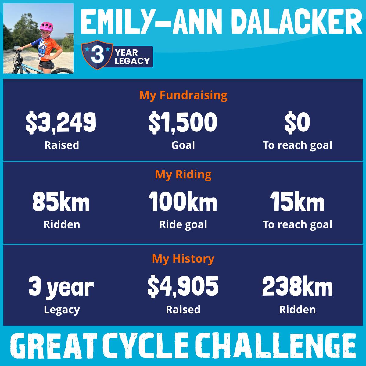 I am riding 100 km for My sister Hallie-Lynn. Please sponsor me and support my challenge to fight kids' cancer and save little lives.