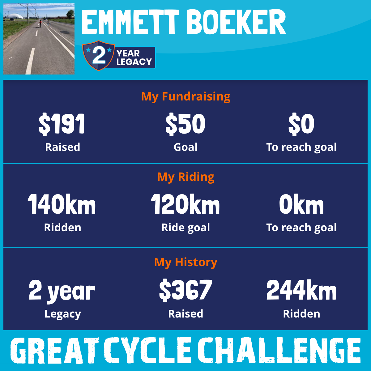 I am riding 120 km in memory of Camden. Please sponsor me and support my challenge to fight kids' cancer and save little lives.