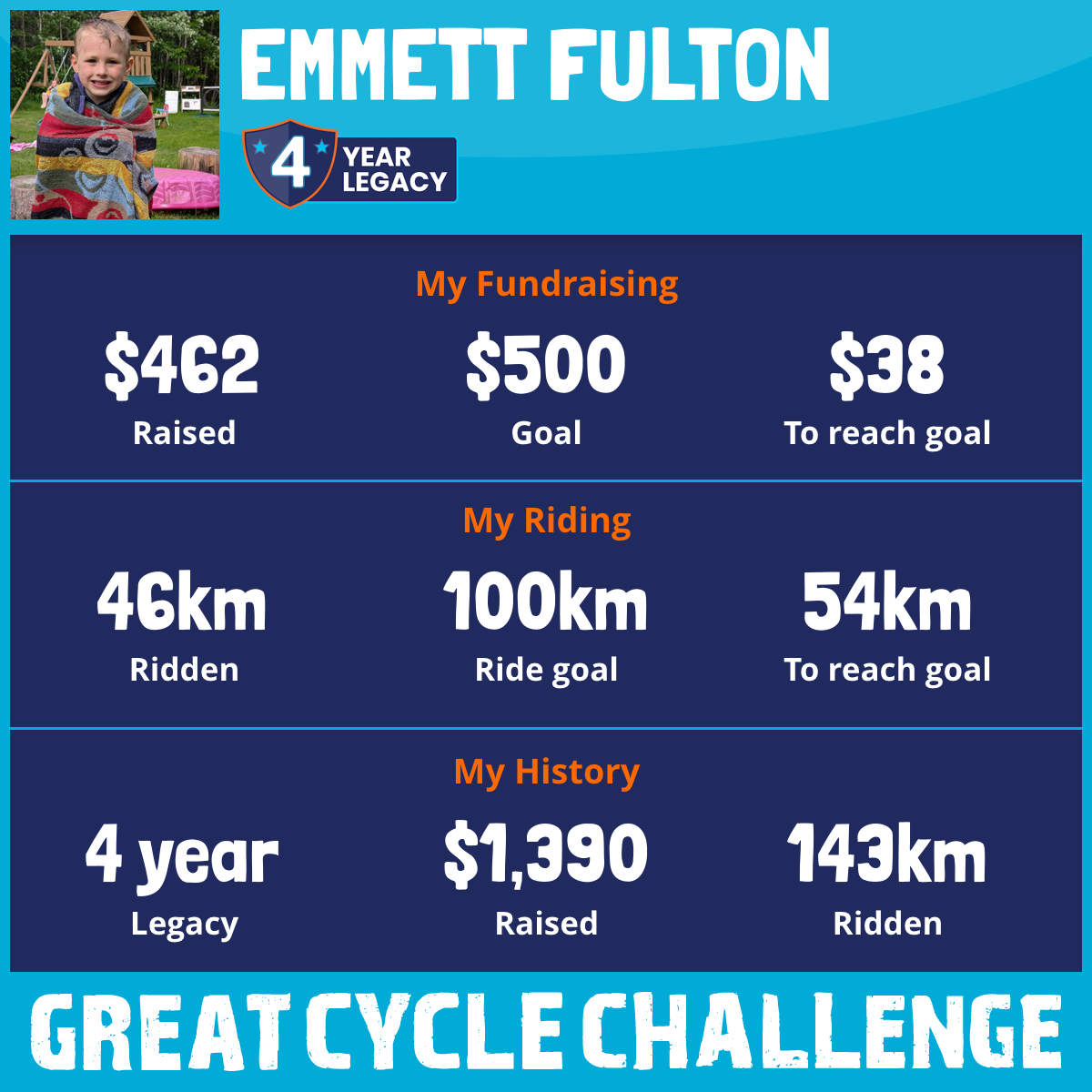 46 km Ridden$462 Raised2026