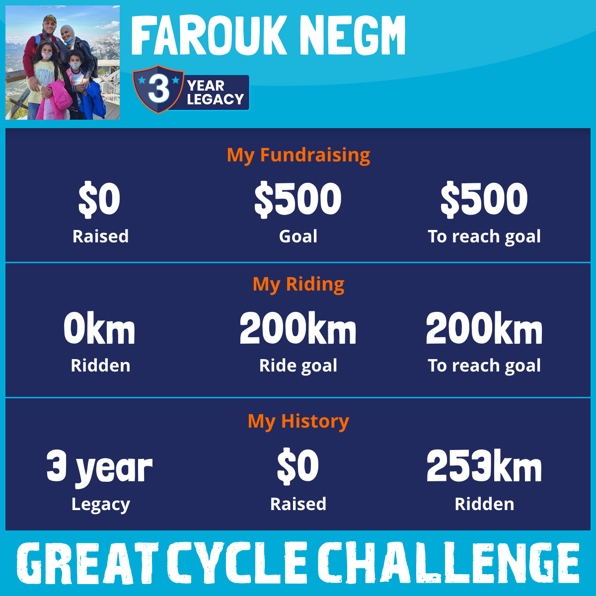 I am riding 200 km for my aunty, Nahla Negm. Please sponsor me and support my challenge to fight kids' cancer and save little lives.