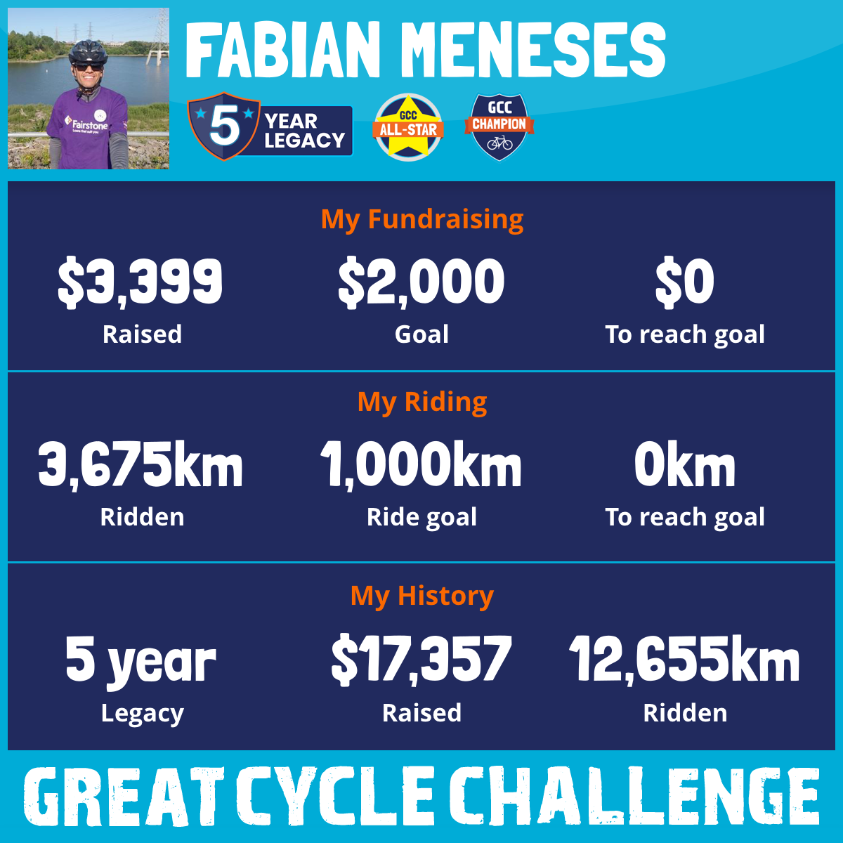 3,675 km Ridden$3,399 Raised2025