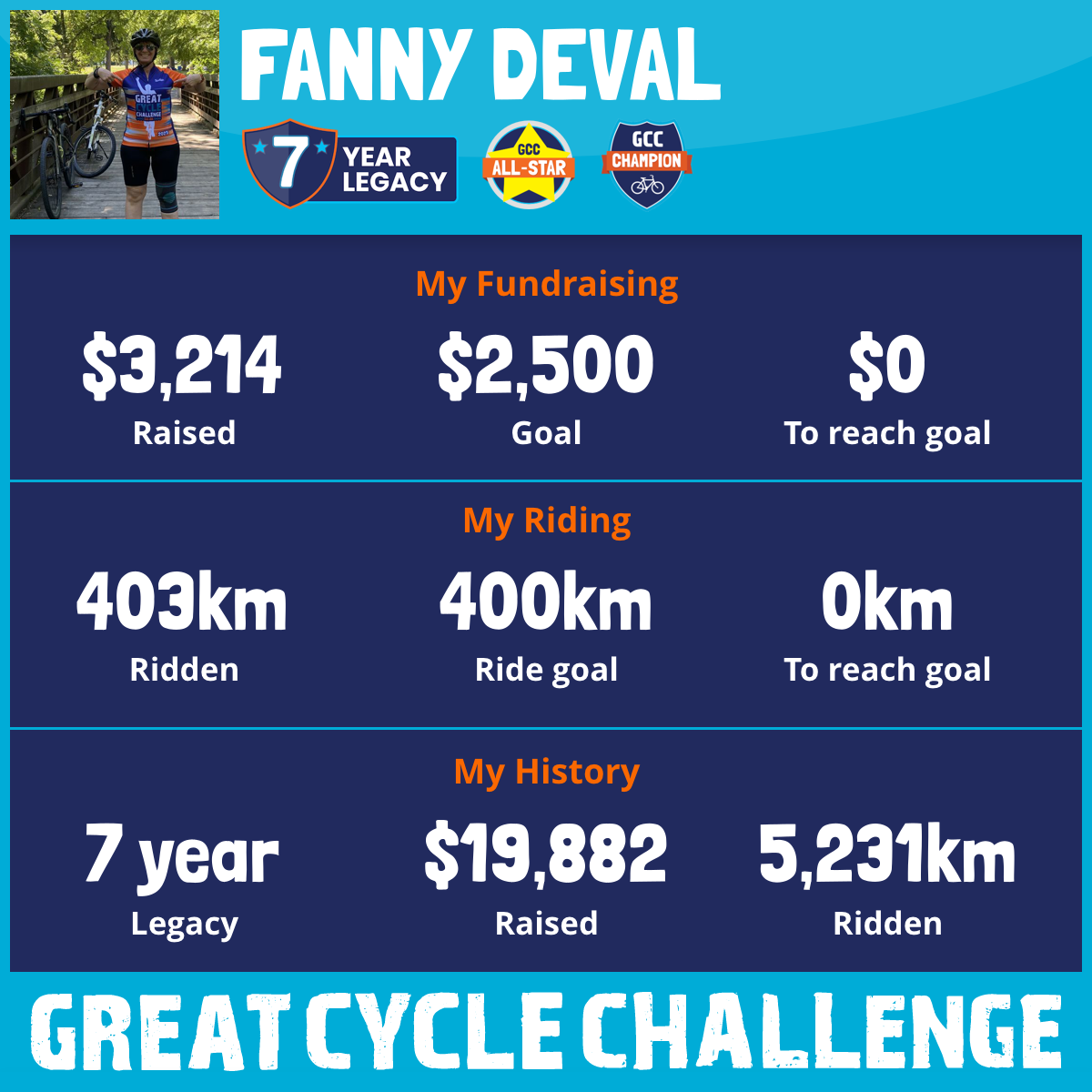 From 2017 to 2022 I rode 4,829km and raised $16,668 to give kids fighting cancer a better life!