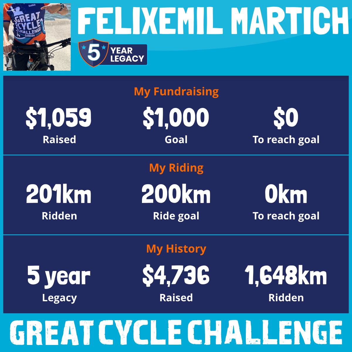 225 km Ridden$1,059 Raised2026