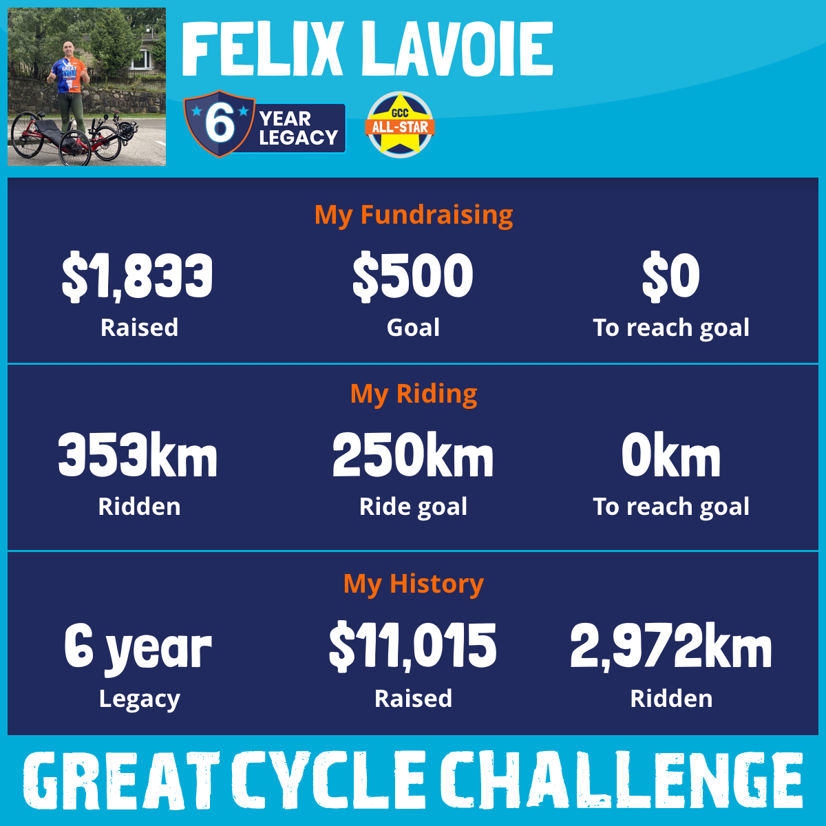 353 km Ridden$1,833 Raised2025