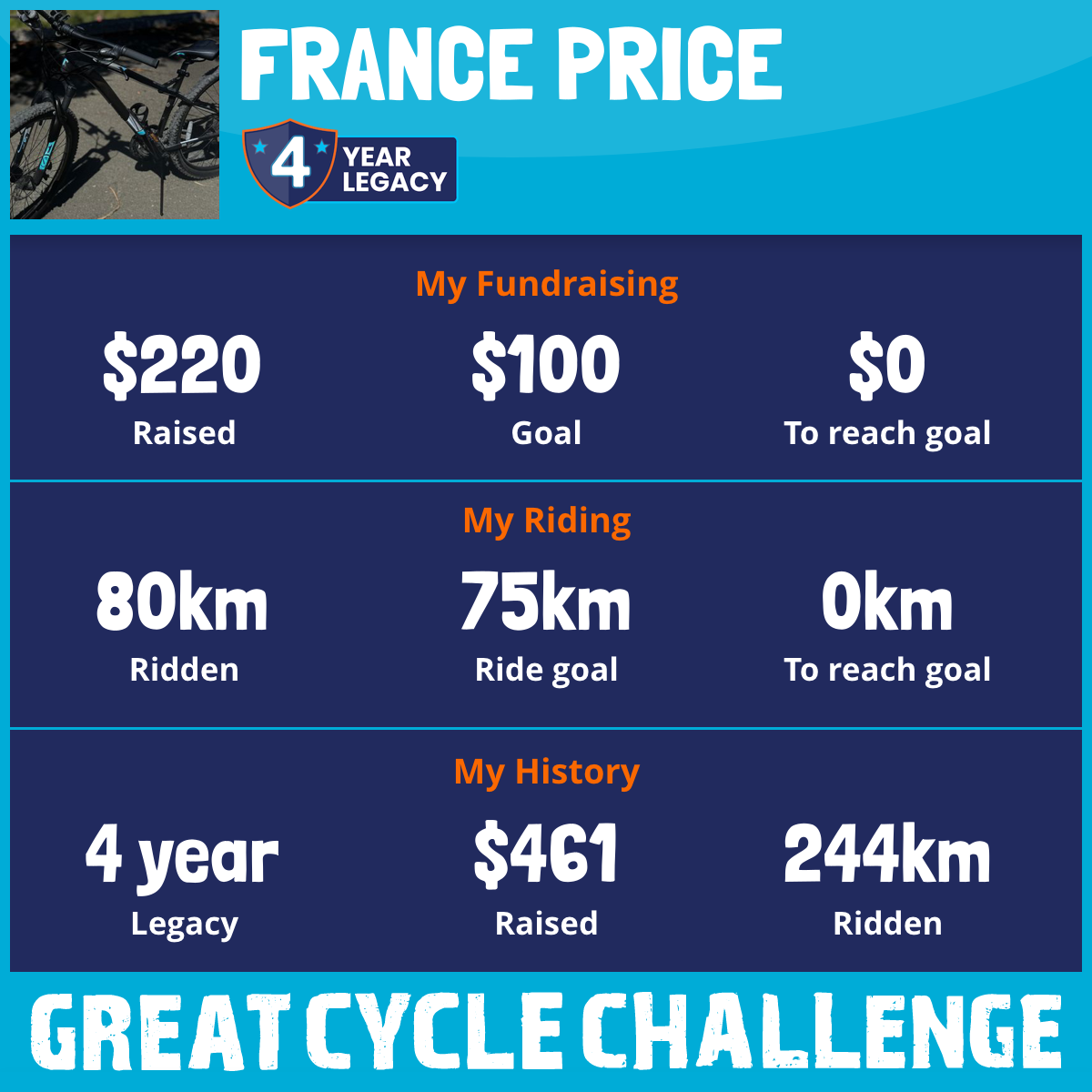 This August, I am taking part in the Great Cycle Challenge to fight kids' cancer!