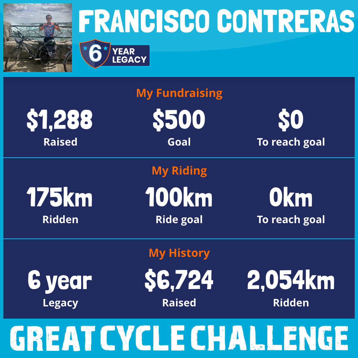 175 km Ridden$1,288 Raised2025