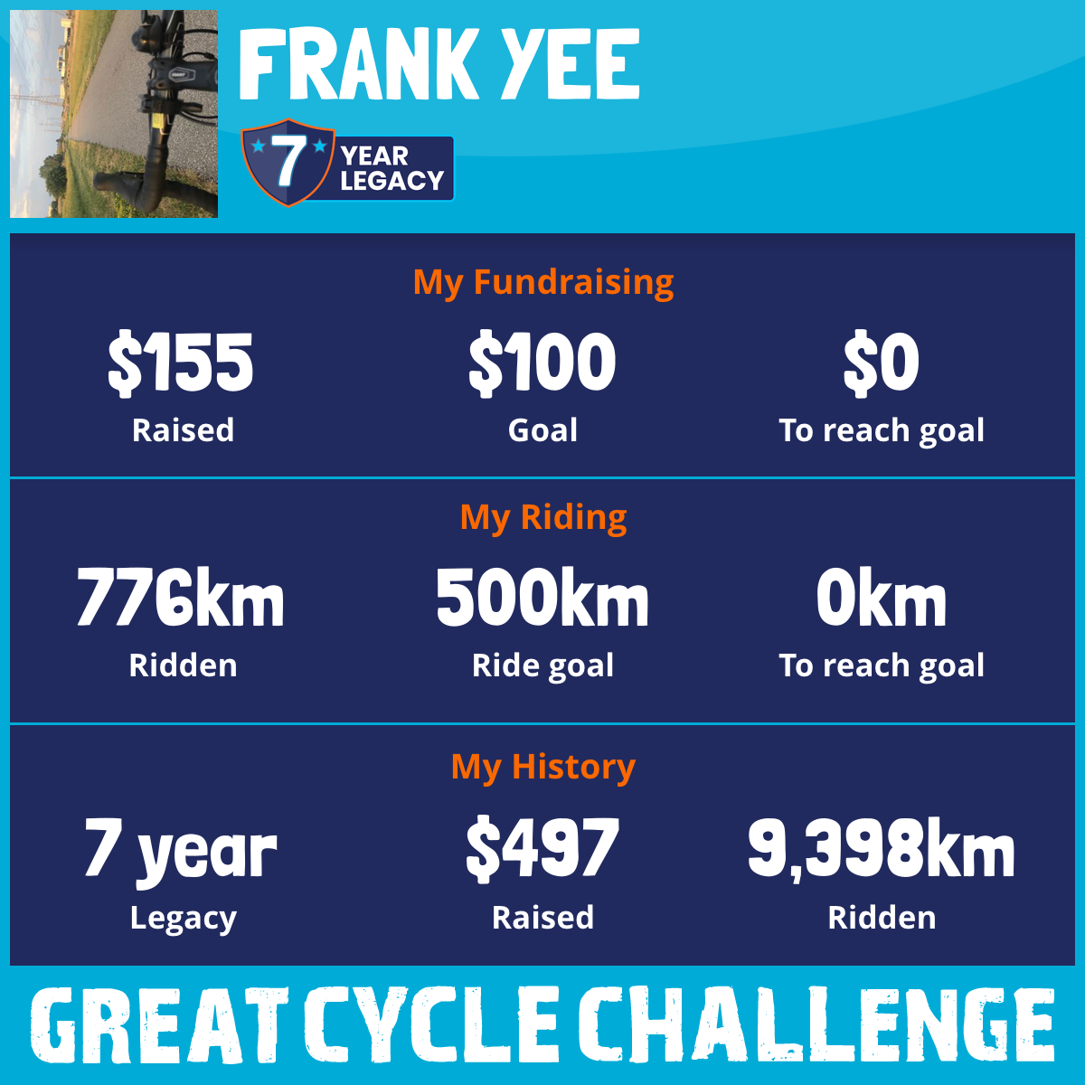 776 km Ridden$155 Raised2026