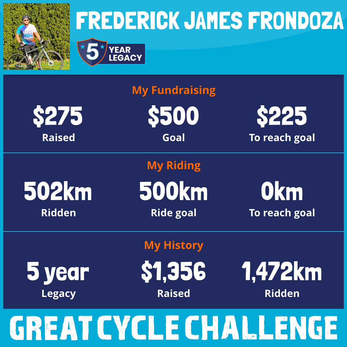 502 km Ridden$275 Raised2025