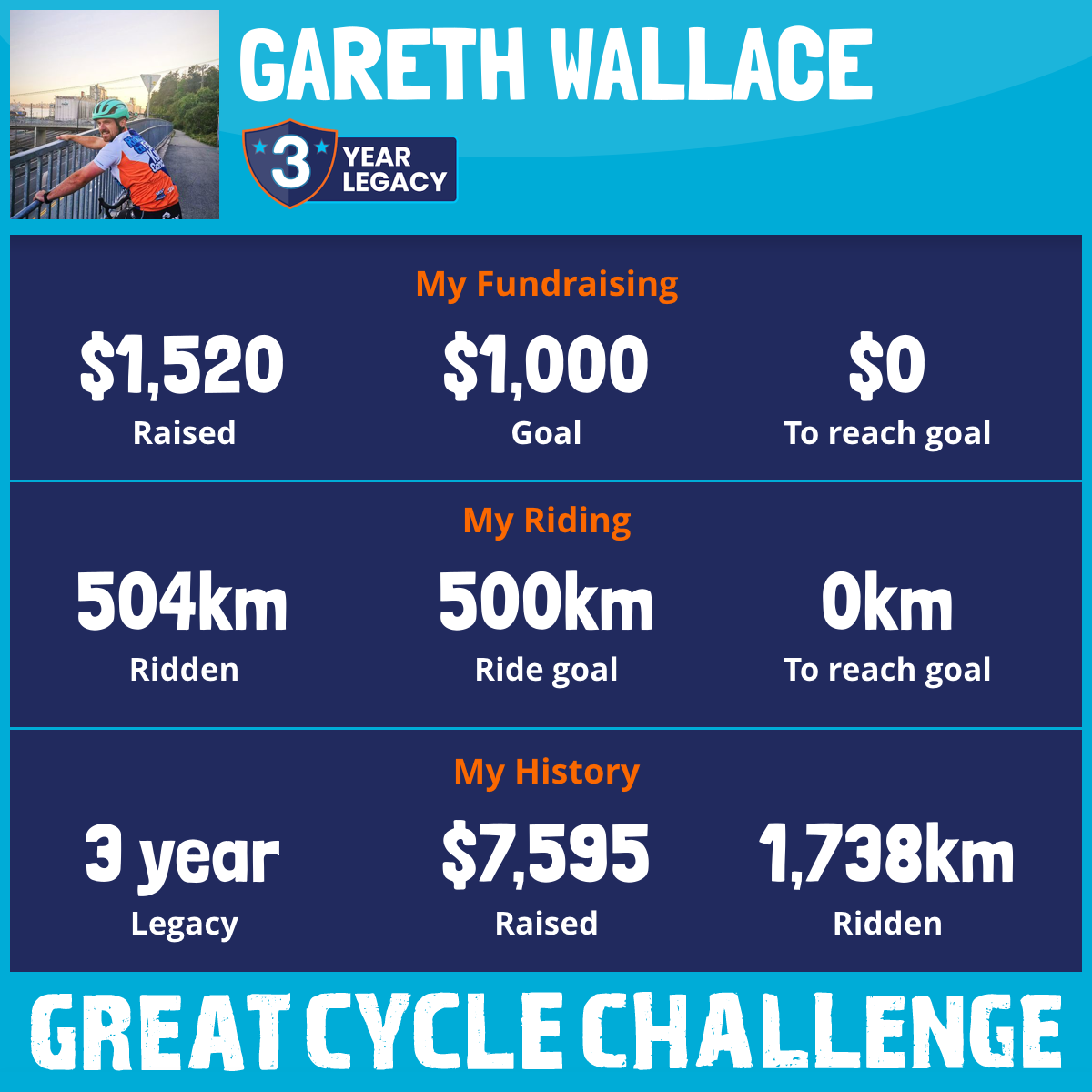 504 km Ridden$1,520 Raised2026