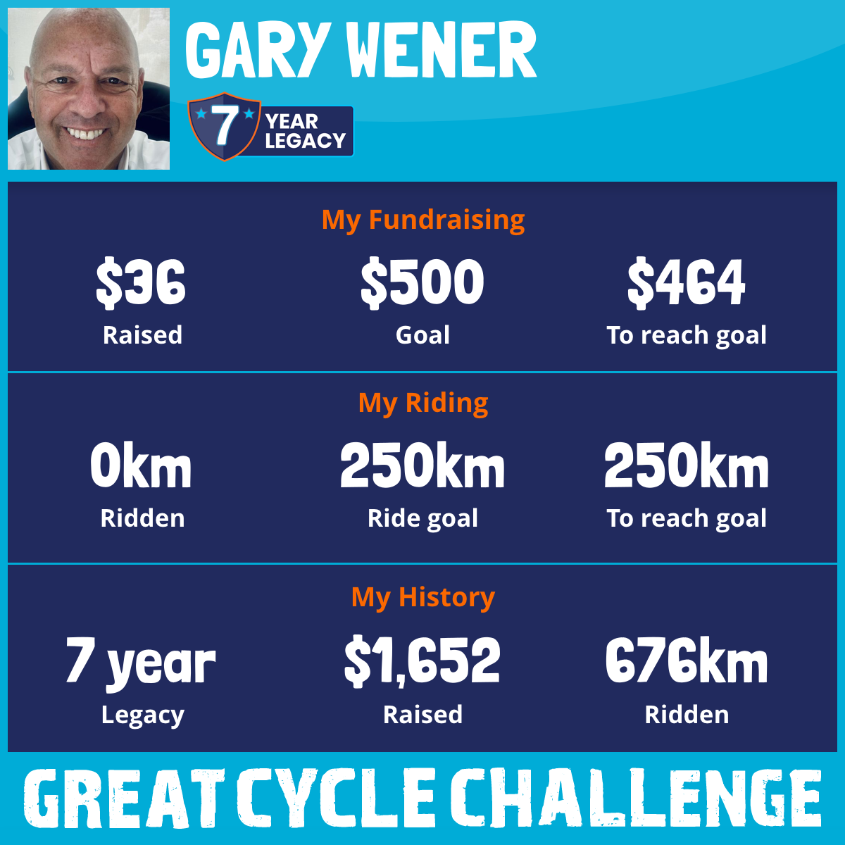 I am riding 250 km in memory of my dad, Phil Wener. Please sponsor me and support my challenge to fight kids' cancer and save little lives.