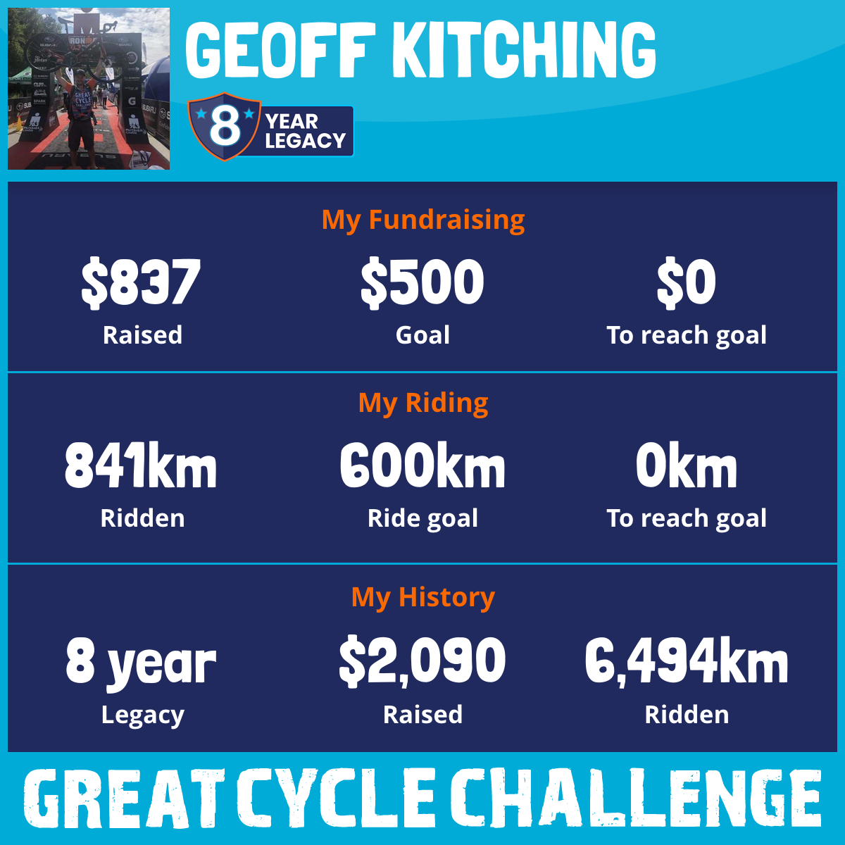 841 km Ridden$837 Raised2025