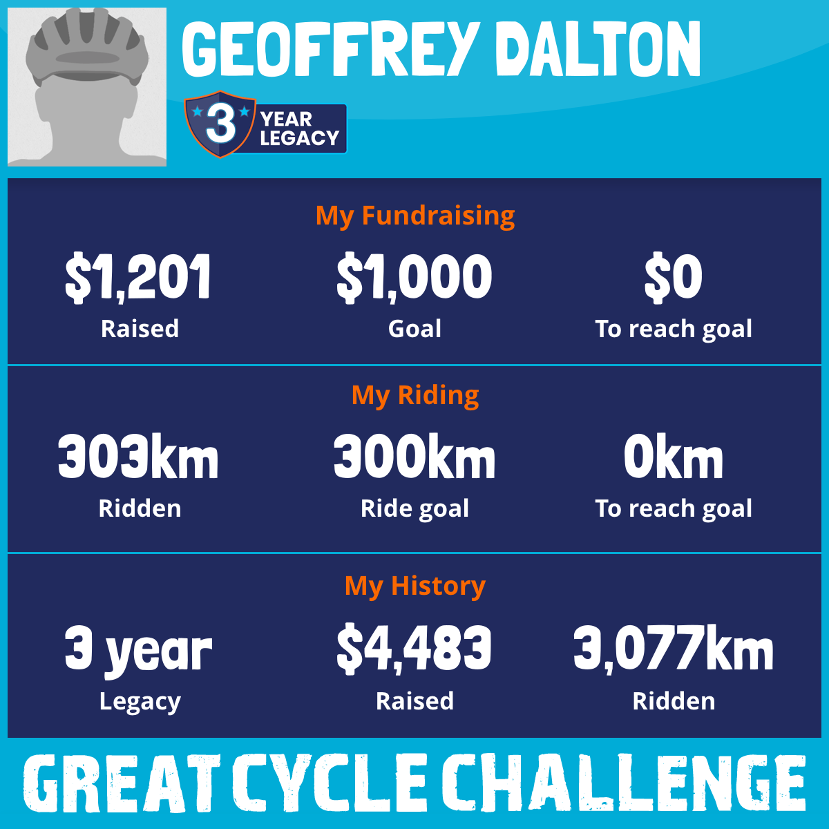 I am riding 300 km in memory of my friend, Ruth Yole & Barry Dohms. Please sponsor me and support my challenge to fight kids' cancer and save little lives.