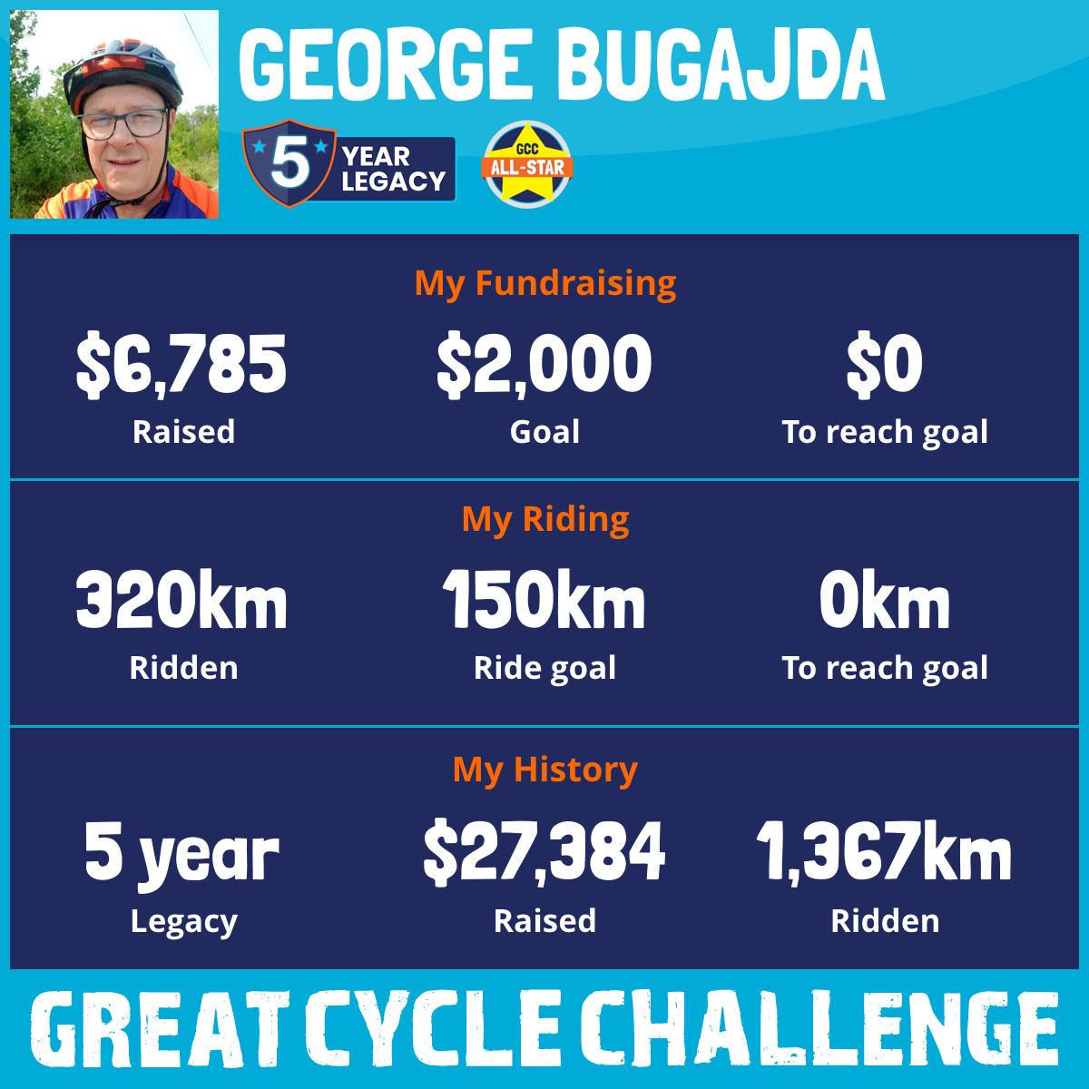 320 km Ridden$6,785 Raised2025