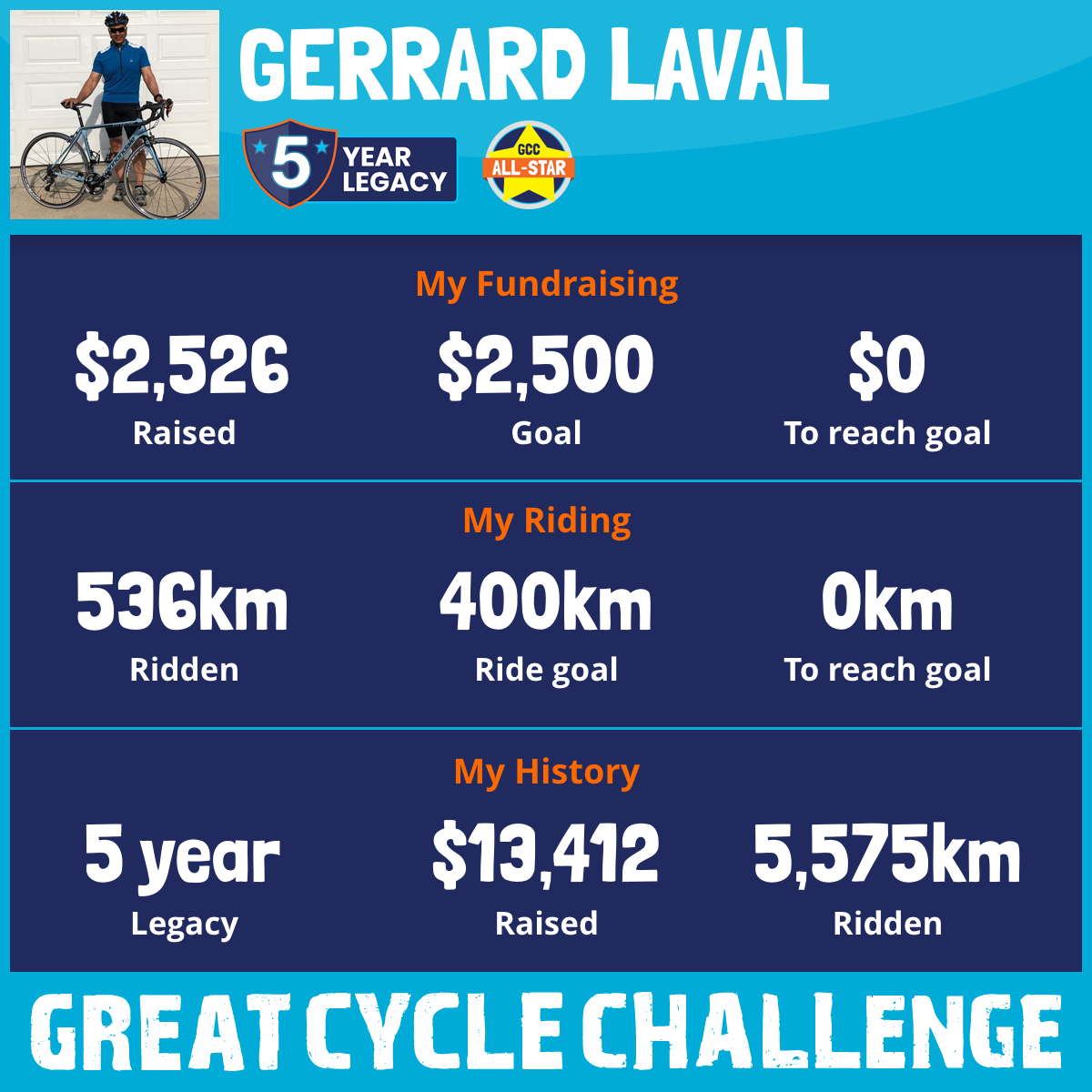 1,292 km Ridden$3,013 Raised2022