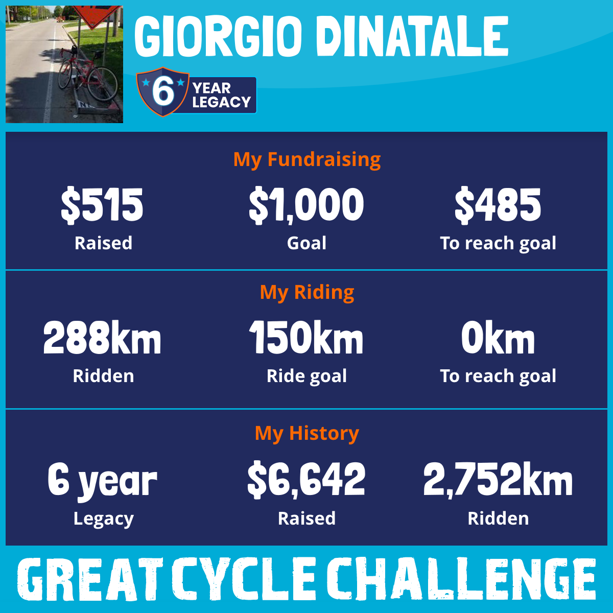 202 km Ridden$1,627 Raised2024