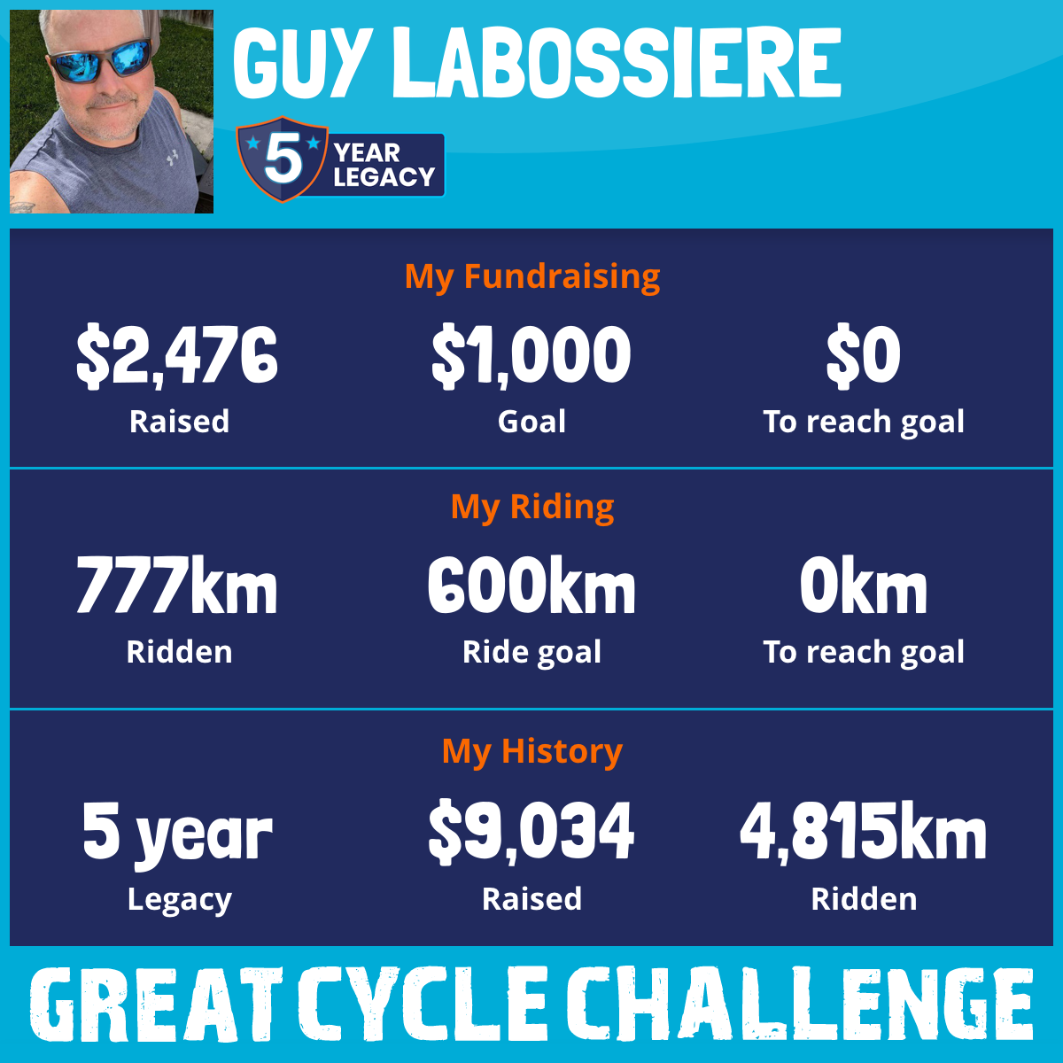 777 km Ridden$2,476 Raised2026