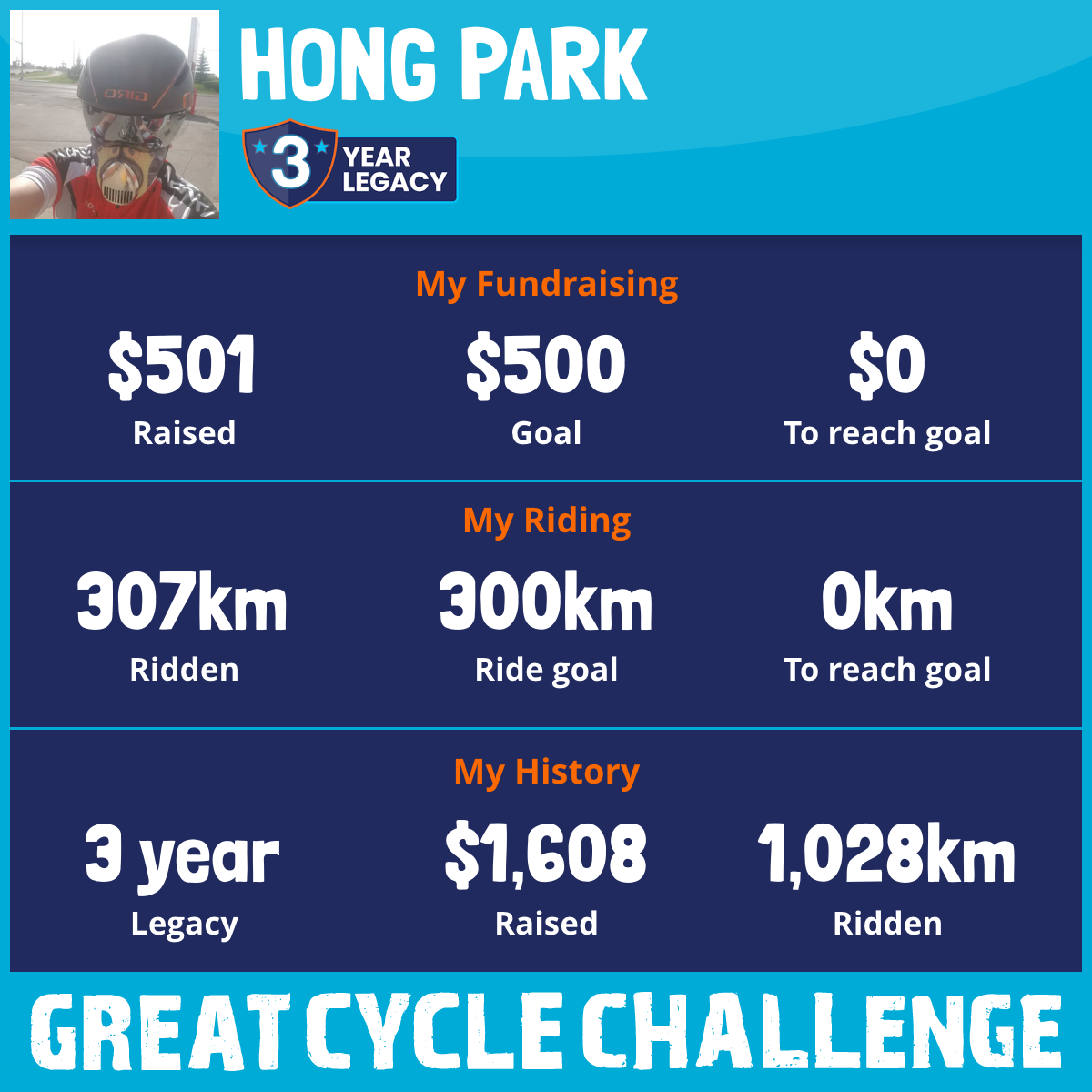 307 km Ridden$501 Raised2026