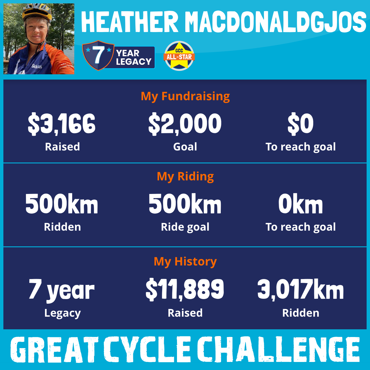 500 km Ridden$3,166 Raised2026