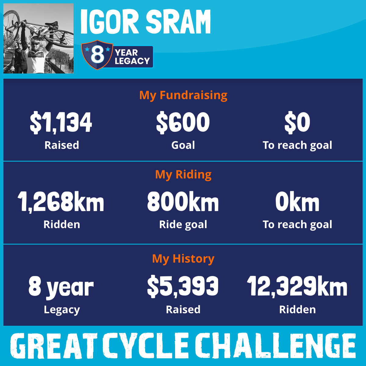1,268 km Ridden$1,134 Raised2026