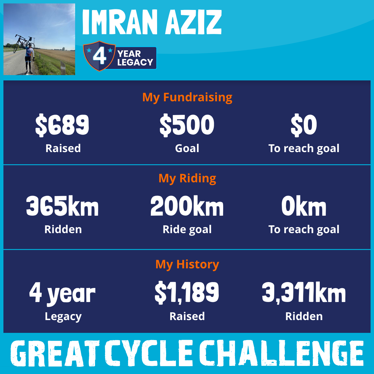 365 km Ridden$689 Raised2026