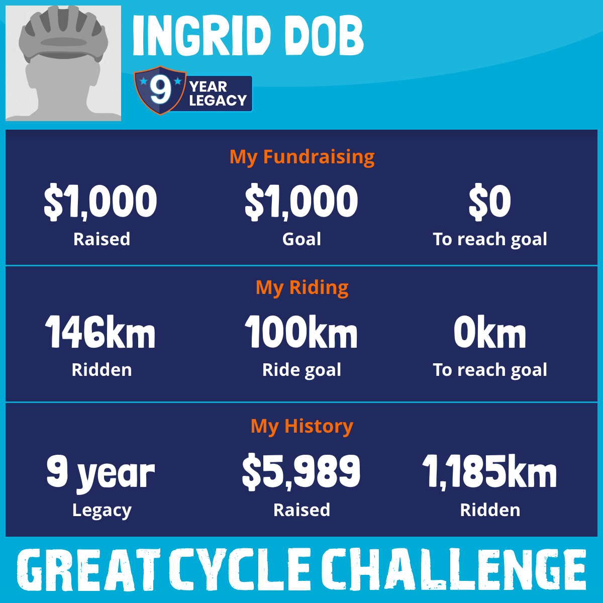146 km Ridden$1,000 Raised2025