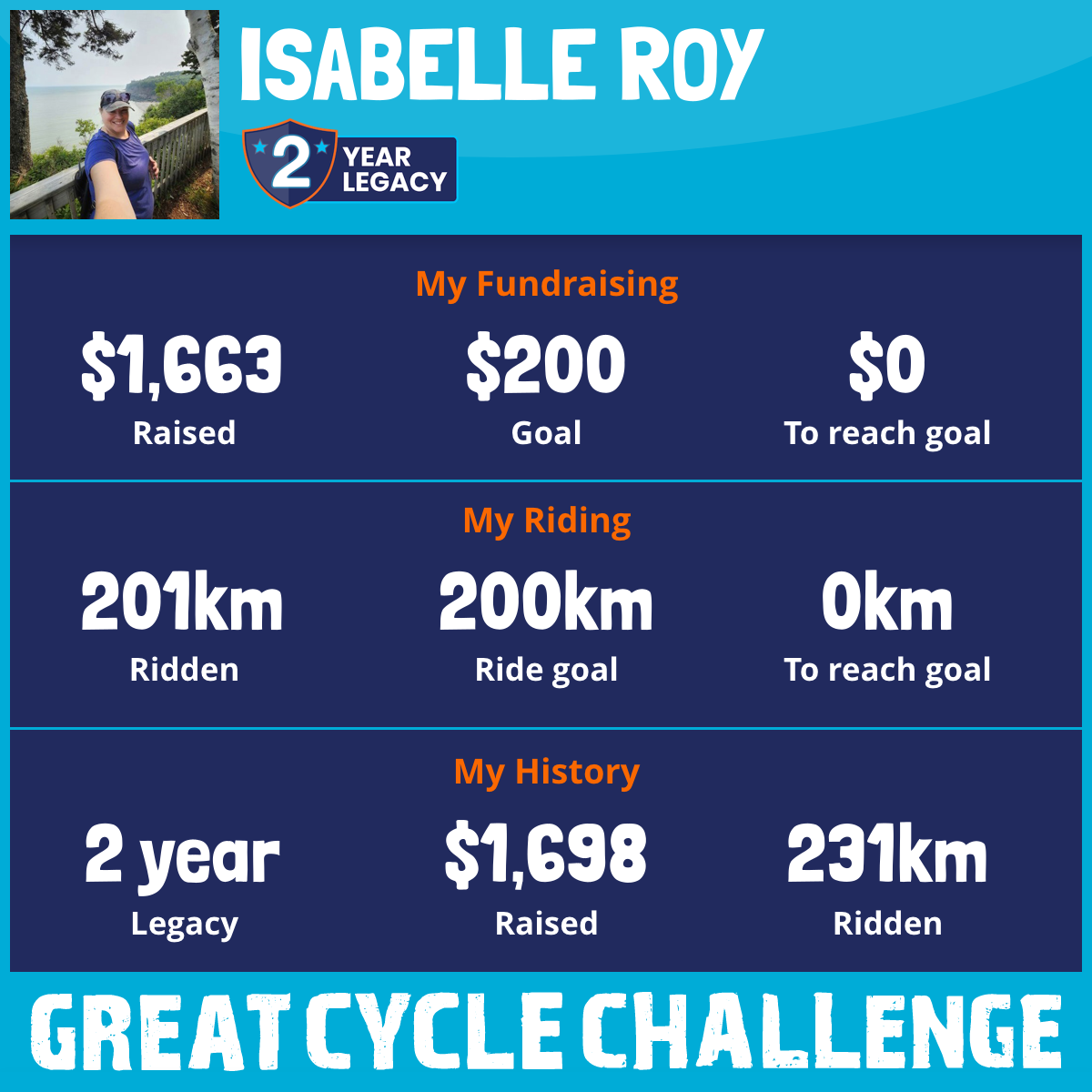 201 km Ridden$1,663 Raised2026
