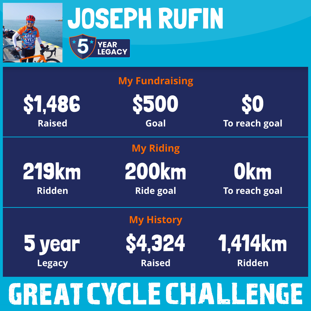 219 km Ridden$1,486 Raised2026