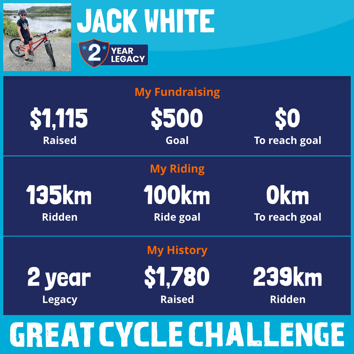 135 km Ridden$1,115 Raised2025