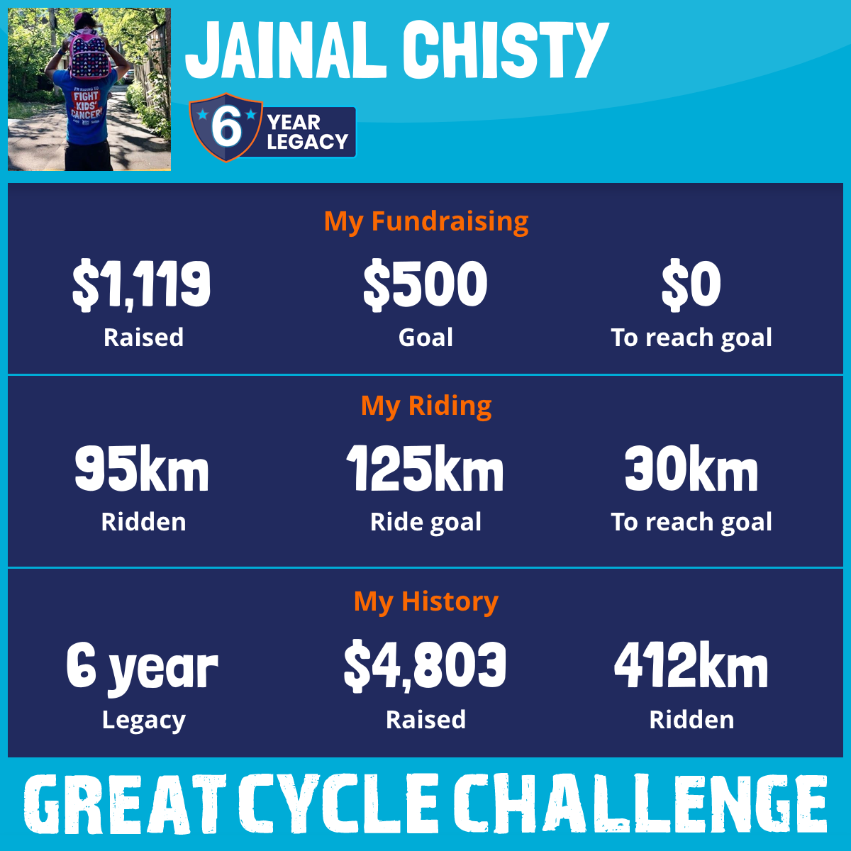 This August, I am taking part in the Great Cycle Challenge to fight kids' cancer!