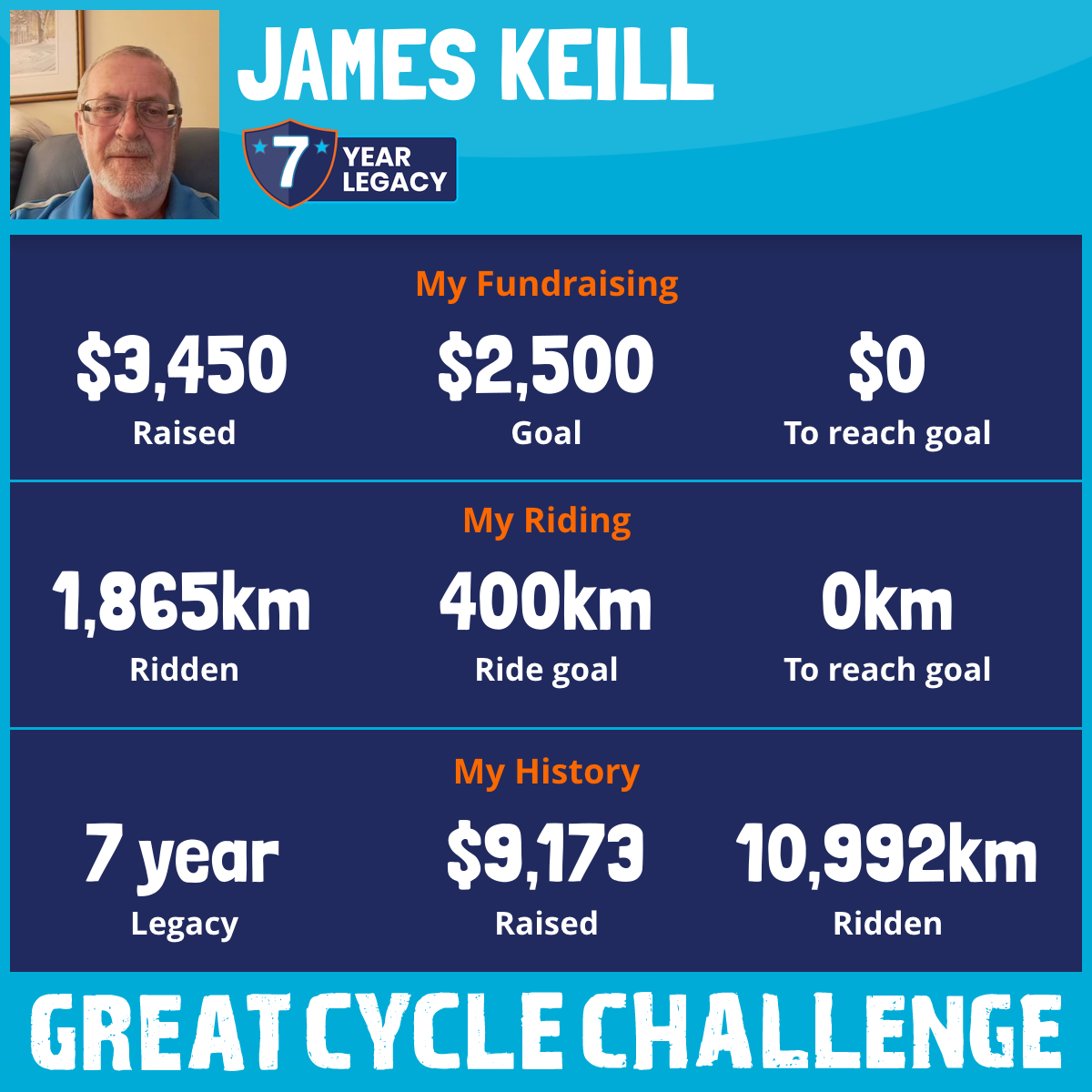 1,865 km Ridden$3,450 Raised2025