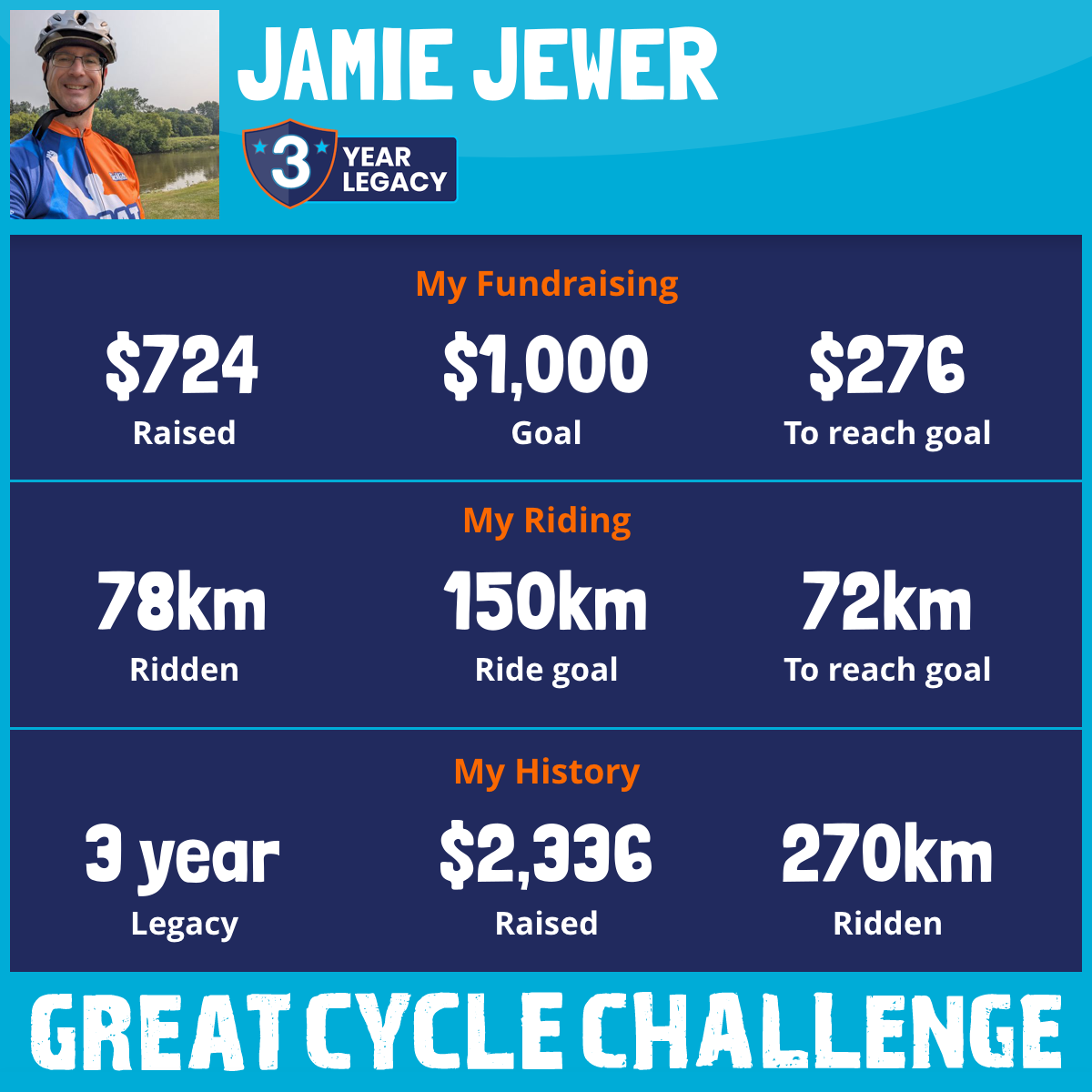 78 km Ridden$724 Raised2026