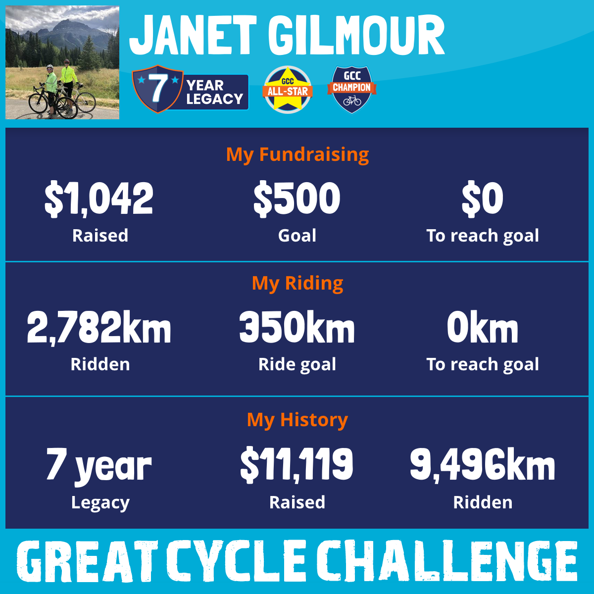 3,001 km Ridden$1,042 Raised2026