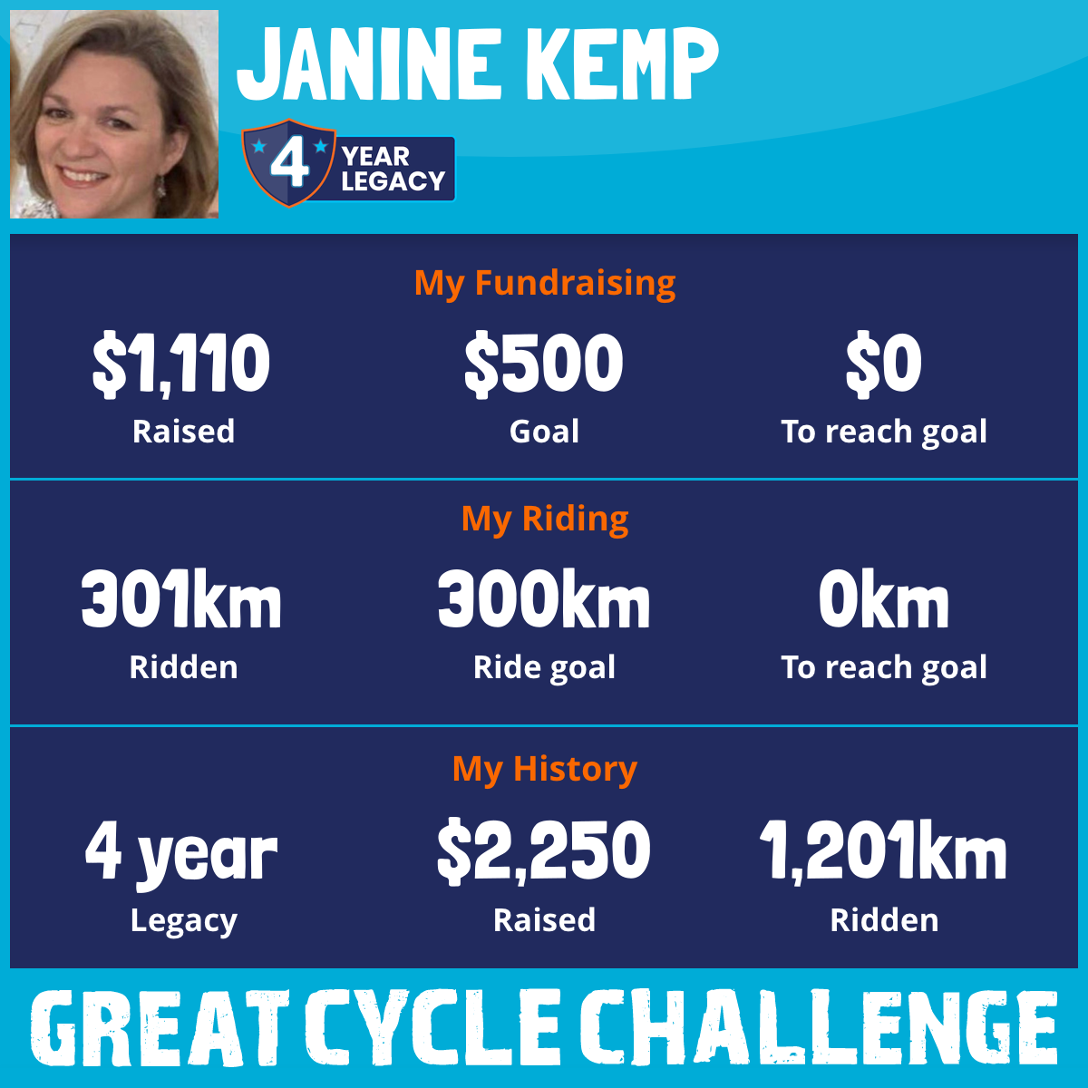 301 km Ridden$1,110 Raised2025