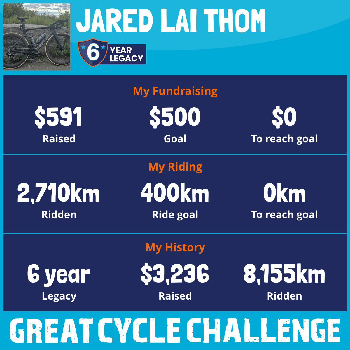 2,904 km Ridden$591 Raised2026
